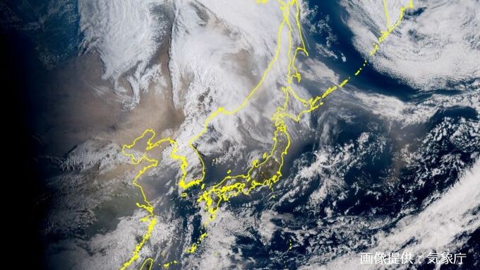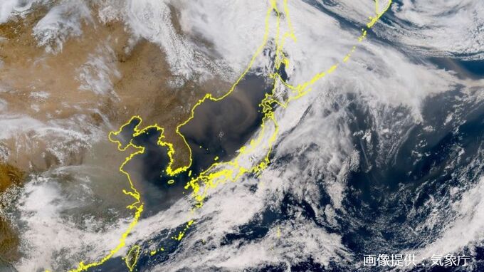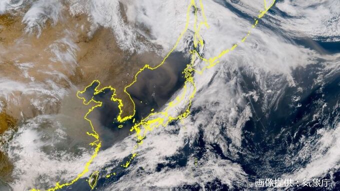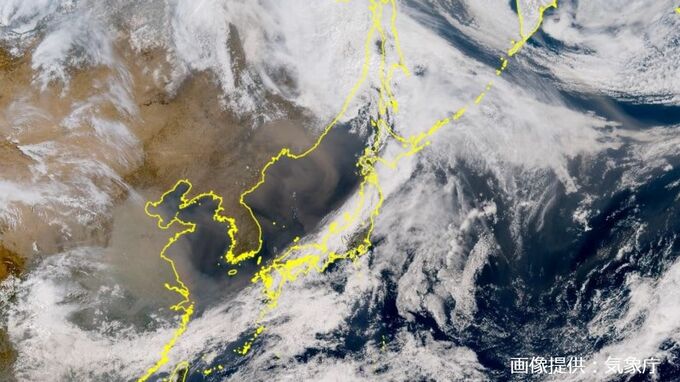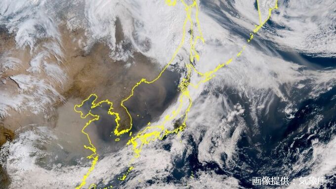 これは、雪解け後の大陸の黄土地帯で舞い上がった土や砂が上空の風に運ばれてくるためで、きのう(11日)午前9時現在で、中国の華北・東北区では視界が2キロ未満となっているところもあったということです。
