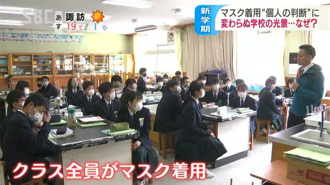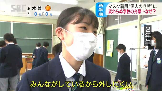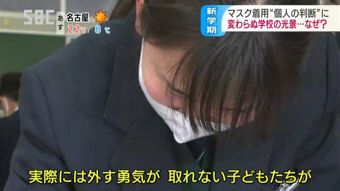 この学校では、今年度から国の方針に従って授業中などのマスクの着用を個人の判断に委ねていますが、生徒たちにとって外すことはハードルが高いようです。