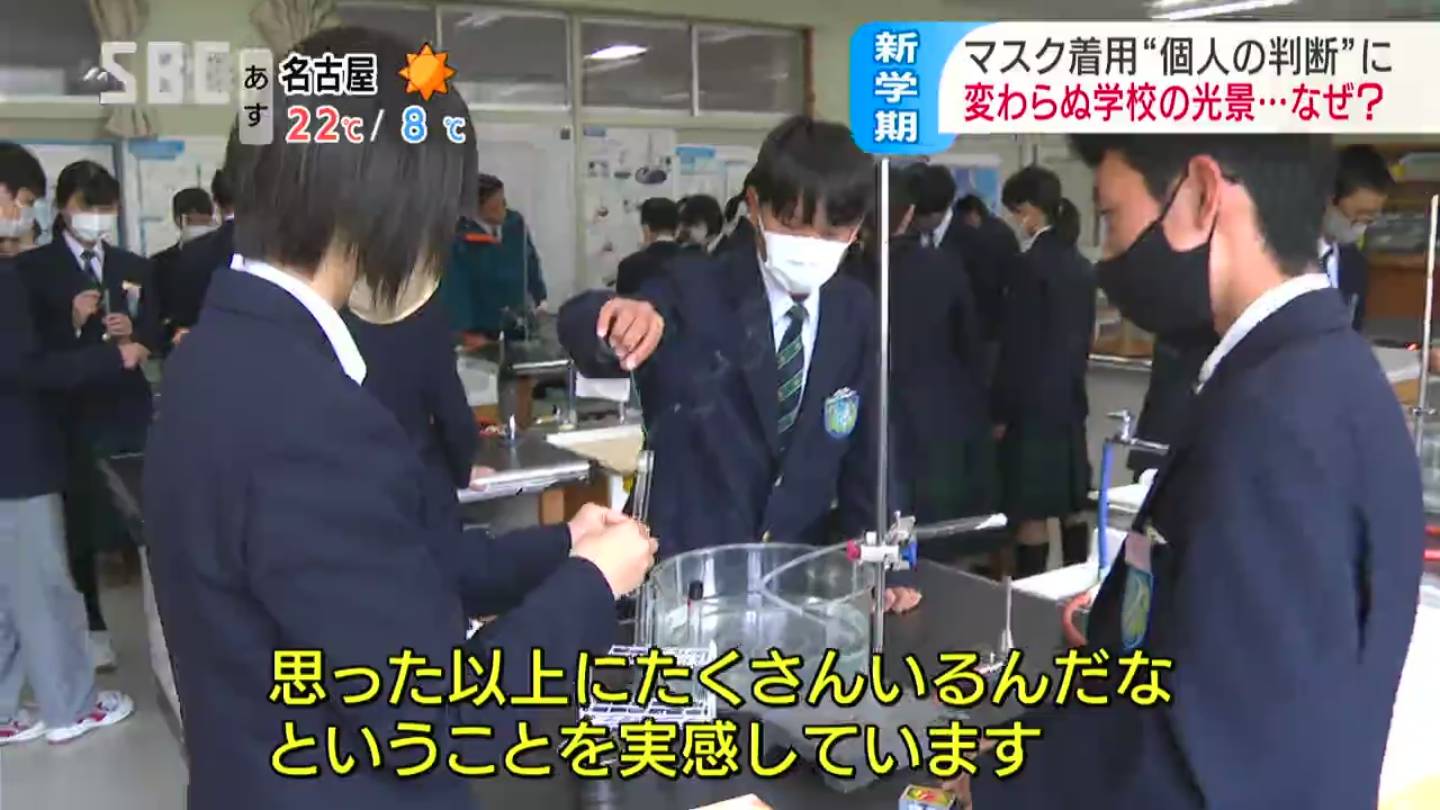 この学校では、今年度から国の方針に従って授業中などのマスクの着用を個人の判断に委ねていますが、生徒たちにとって外すことはハードルが高いようです。
