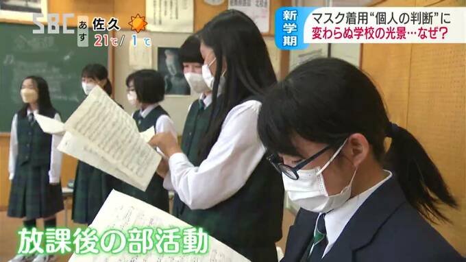 運動部に加え、吹奏楽や合唱のような、マスクをしたままでは練習しにくい部活動でもまだまだ外しづらいようです。