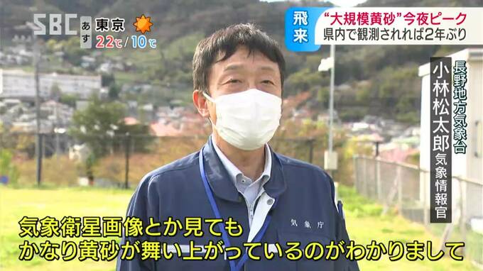 ■長野地方気象台・気象情報官 小林松太郎さん 「気象衛星画像などを見てもかなり黄砂が舞い上がっているのが分かりまして、長野でも影響が出そうかなと」