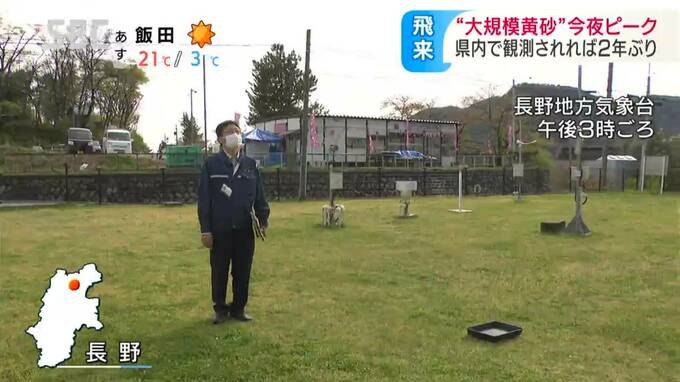 長野地方気象台によりますと、黄砂が県内に飛来すると予想されているのは、12日午後6時ごろから13日の午前中にかけて。