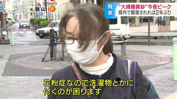 中国で発生している大規模な黄砂は、県内にはあす(12日)にかけて広い範囲に飛来すると予想されています。