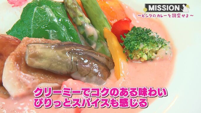 --熊崎調査員(TUFアナウンサー)「本当に鮮やかなピンク!ちょっとスイーツみたいですよね。これ本当にカレーなんですか?」