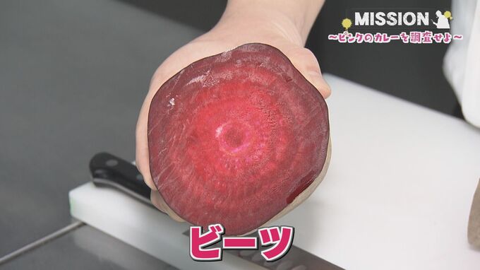 --熊崎調査員(TUFアナウンサー)「調査報告!ピンクのカレーの秘密は、この“ビーツ”にありました。これでミッションコンプリートです!」