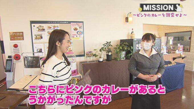 --熊崎調査員(TUFアナウンサー)「こちらにピンクのカレーがあるとうかがったのですが。」