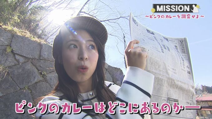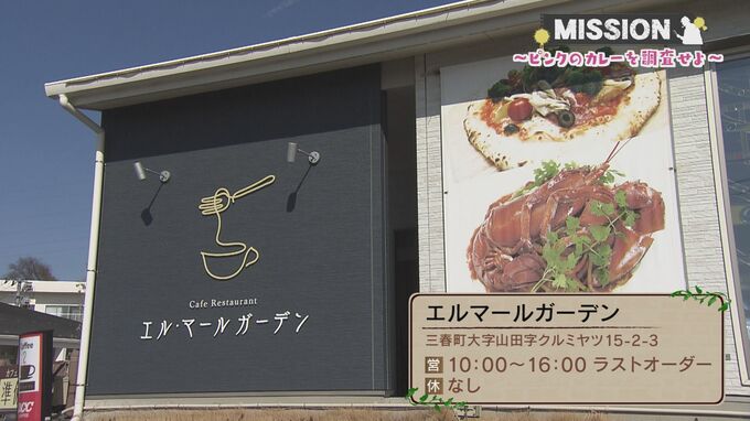 --熊崎調査員(TUFアナウンサー)「今日はボスから指令を受けて、(福島県田村郡)三春町にやってきました。ピンクのカレーがあるということで、早速調査開始していきます。」