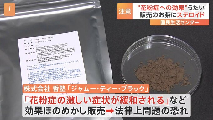 花粉症への効果をほのめかし、販売されていたお茶に「ステロイド」の成分が含まれていたとして、国民生活センターが注意を呼びかけています。問題になっているのは、大阪市の「株式会社 香塾」が輸入・販売する「…