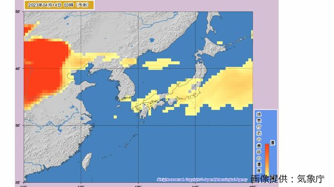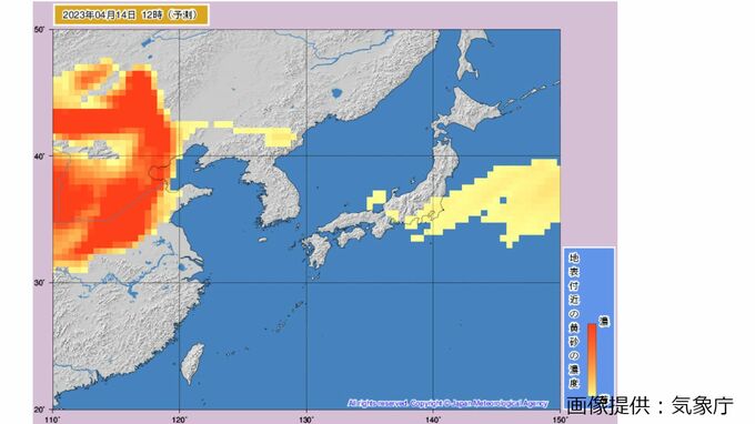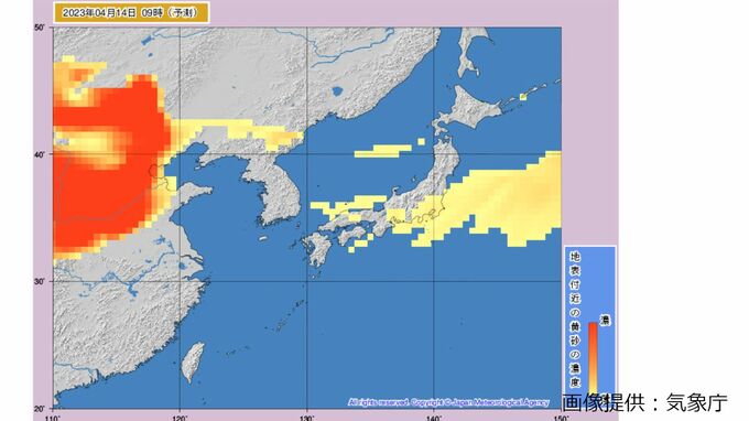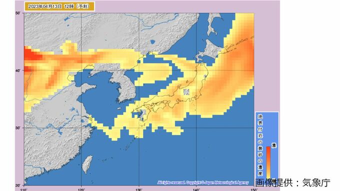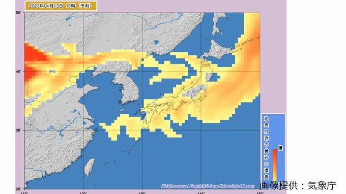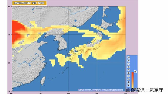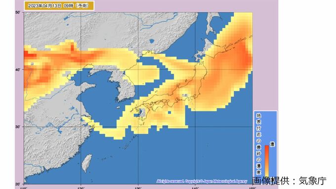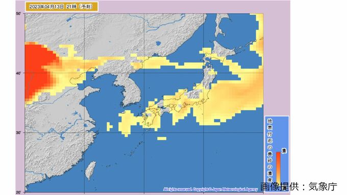 きょう(13日)も引き続き、北日本から西日本にかけて黄砂の飛来が予想され、視程が10キロメートル未満となり、ところによっては視程が5キロメートル未満となる見込みです。
