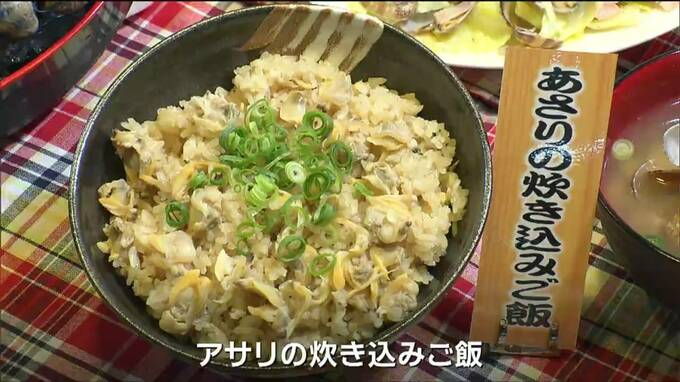 アサリのうま味が溶けだした出汁で炊いた炊き込みご飯。