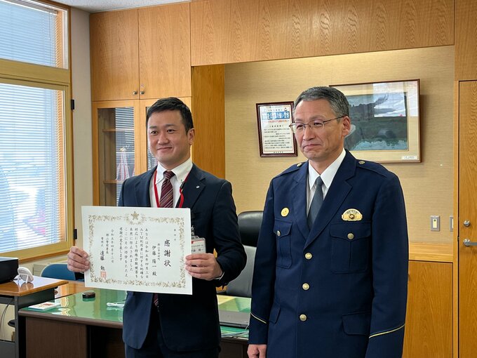 感謝状を受け取った伊藤さんは「被害を防ぐことができてよかった」と話しました。また、男性からは「周りに相談できる人がいなかった。伊藤さんと話ができてよかった。」と感謝されたということです。