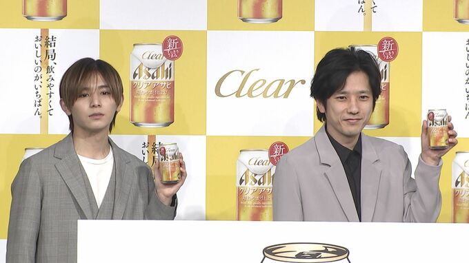 クリアアサヒ リニューアル新CM発表会が行われ、CMに出演した二宮和也さん、中丸雄一さん、山田涼介さん、菊池風磨さんが登壇しました。「クリアアサヒ」の中味とパッケージデザインがリニューアルされたことに伴い制作された今回の新CM。YouTube「ジャにのちゃんねる」のユニットメンバー4人が、全員そろって初めてのCM出演を果たしました。