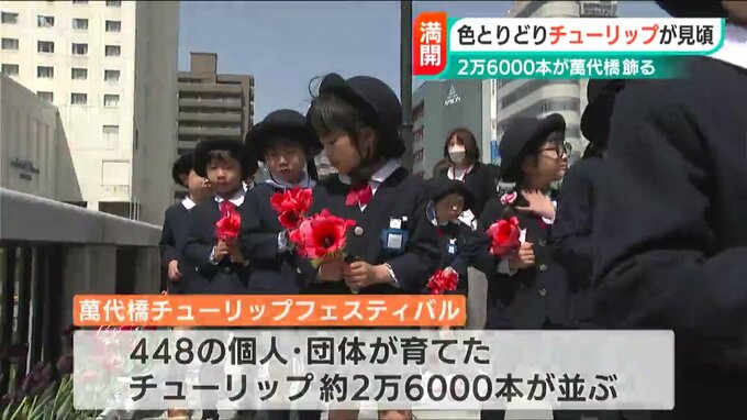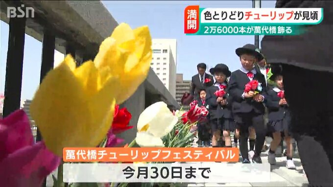 子どもたちなど448の個人や団体が大切に育てた2万6000本が萬代橋を彩ります。