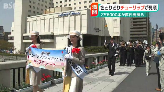 一方、萬代橋では消防音楽隊の軽やかな演奏とともにチューリップフェスティバルが始まりました。