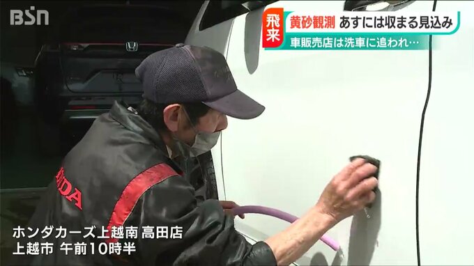 こうした中、上越市の自動車販売店では朝から洗車に追われていました。