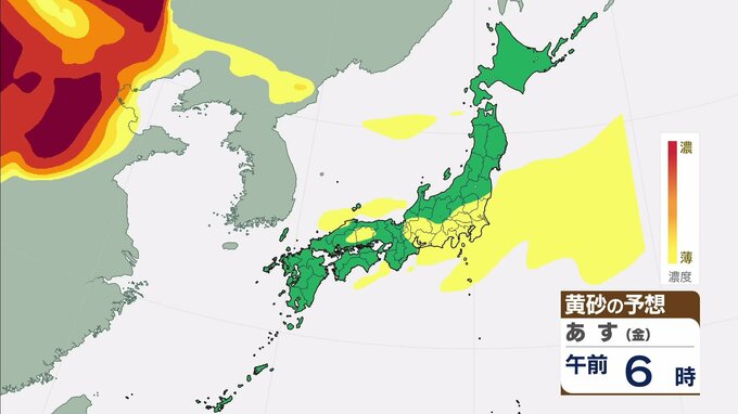 一方で、大陸を見てみると、また“濃い黄砂の表示”があります。今後、日本にどのような影響を与えるか注意が必要そうです。