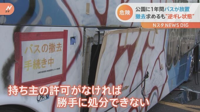 “バスが壊れたのは市の責任”“直すまでは動かさない”などという身勝手な言い分で、“逆ギレ状態”だといいます。撤去するにも、持ち主の許可がなければ勝手に処分することができず、交渉は平行線。川崎市は、今後も交渉を続けるということです。