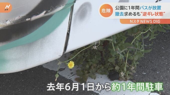 「子ども連れてきたときには(子どもが)行きたがるけど、近づかないでと言っていますね」5~6台分の駐車スペースを占領したまま放置されている大型バス。