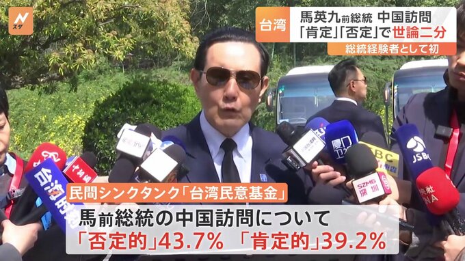台湾の馬英九前総統が台湾の総統経験者として初めて中国を訪問したことについて、台湾では世論が二分しているとする調査結果が発表されました。中国に近いとされる国民党に所属する台湾の馬英九前総統は先月下旬か…