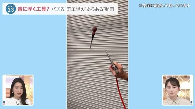 さらに、機械などについたホコリを空気で除去する道具を使って、絶妙な力加減でドライバーを浮かせている動画も。