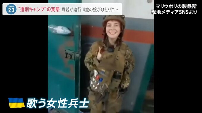 マリウポリの製鉄所で歌うのはウクライナ側の女性兵士です。ロシア軍の砲撃が聞こえる中、士気を高めるために歌っています。