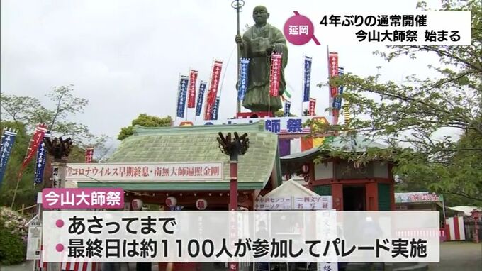 「おだいっさん」の愛称で親しまれている宮崎県延岡市の「今山大師祭」が、4年ぶりの通常開催として14日から始まりました。延岡市の今山大師には、午前中から多くの人が訪れ、高さ17メートルの弘法大師像を前に、…