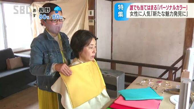 3月、長野市内で行われた、パーソナルカラー診断の体験会。