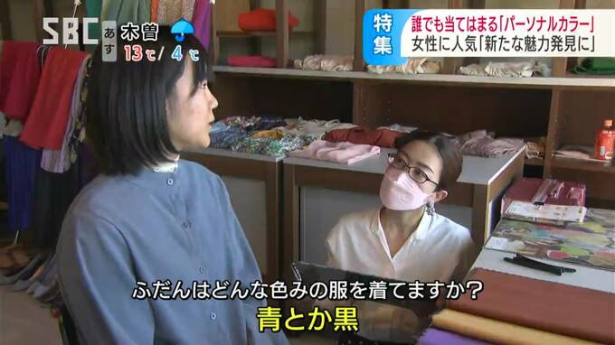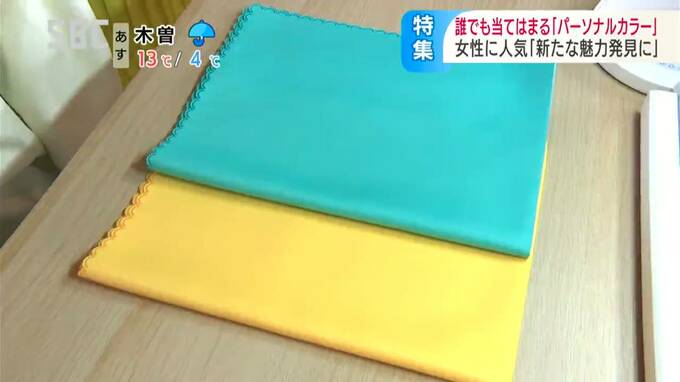 ■浅井さん「似合う色はこの2色です 卵の黄身の黄色とティファニーブルーです」