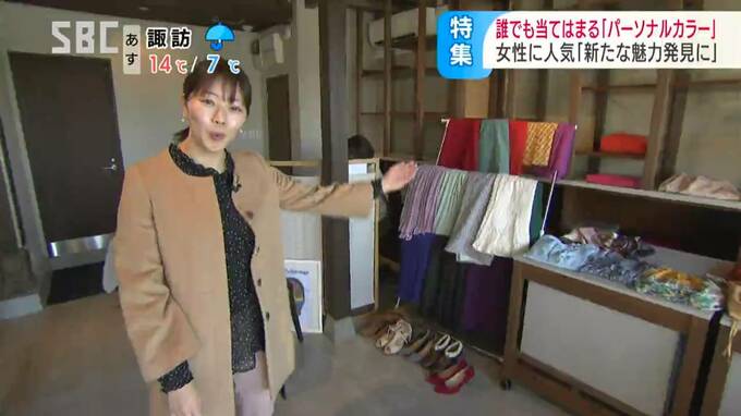 ■古畑キャスター「こちらではパーソナルカラーを診断した後、その結果にそってコーディネート・メイクも行う“変身企画”が行われています」