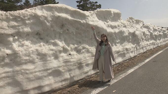 小湊アナ「こちらが雪の回廊です。高いところだと、私の身長より2倍ほどの高さがあるんですが、低いところだと私と同じくらいの身長の高さになっています。