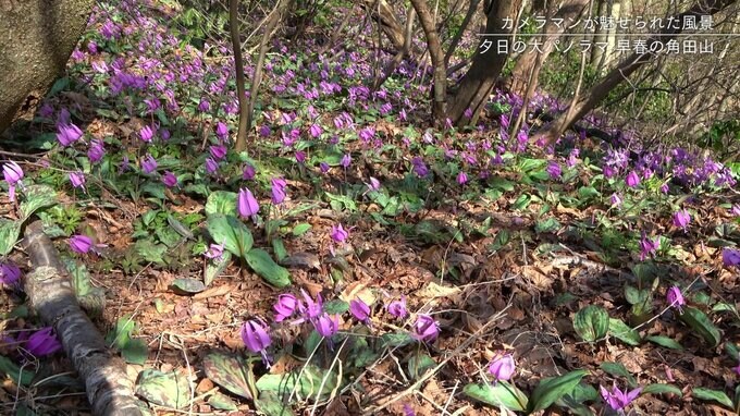 登山道の両脇を彩る薄紫色の可憐な花は“春の妖精”とも呼ばれるカタクリです。