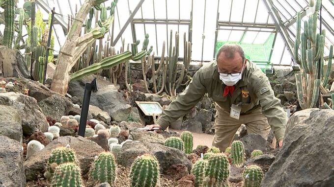 「サボテン博士」と呼ばれている真鍋憲一さんは、園のサボテンを33年に渡って管理し、独学でサボテンの研究をしています。