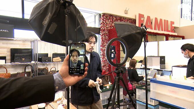 静岡市駿河区でブランド品の買取販売を行うセレクトショップ。こちらの会社では月に1億円程度のブランド品を買い付けてネットを中心に販売しています。以前は「大手通販サイト」を仲介して販売していましたが、商品の仕入れ値が高騰してきたため、利益が出ない状態に。そこで、ライブ配信機能を使って客に直接、販売することにしたのです。