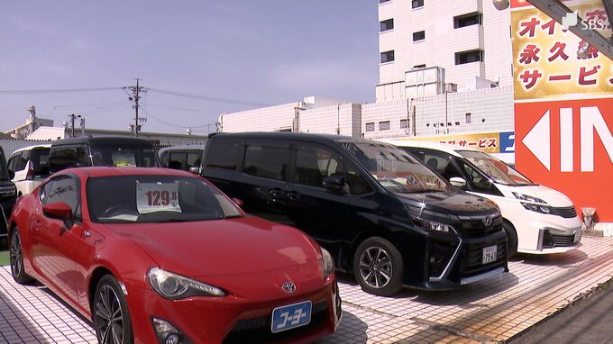 静岡市駿河区の中古車販売店です。常時50台の車が展示されているこちらの店は、連日の黄砂に頭を悩ませています。