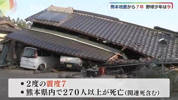 熊本地震から7年がたちました。当時、取材で現地に入ったtys・永岡克也アナウンサーは、家が崩れてしまったという1人の野球少年と出会いました。彼が20歳を迎える今年、久しぶりに会いに行きました。その成年がいま思うこと、そして、新たに見つけた将来の夢とは?