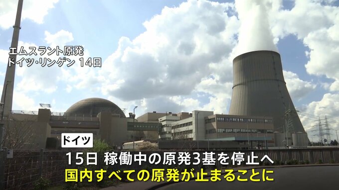 福島第一原発事故後に「脱原発」を加速させていたドイツで15日、全ての原発が停止されます。記者「冷却塔から水蒸気が上がるこちらの原発、15日には送電が停止されます」ドイツでは15日、稼働中の原発3基が停止さ…