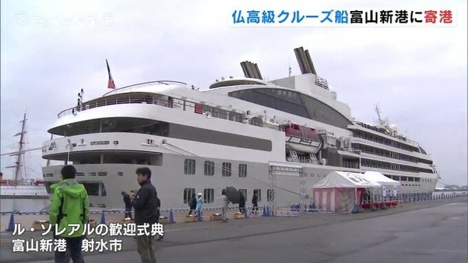 フランスの高級クルーズ船が、15日けさ射水市の富山新港に寄港しました。フランスやアメリカなどから乗客219人を乗せたフランスの高級クルーズ船「ル・ソレアル」がけさ6時ごろ富山新港に入港しました。「ル・ソレ…