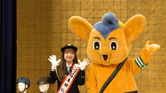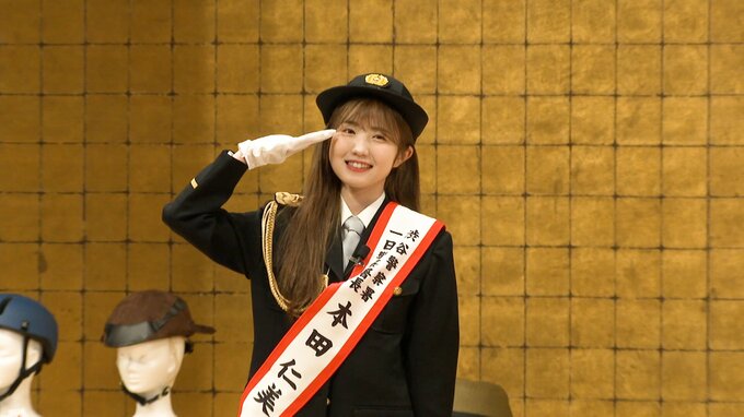 警察官の制服姿で登場した本田さんは“こんにちは、AKB48の本田仁美です”と元気よく挨拶して敬礼。“私はメンバーのダンスだったり、細かな振り付けをよくチェックしていることから『本田警察』と呼ばれることがあるのですけれども、リアルの『本田警察』として、皆さんと一緒に交通ルールやマナーについて、再確認していけたらいいなと思います”と呼びかけました。