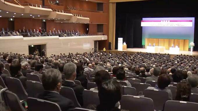 会場となった岡山シンフォニーホールには、結婚50年を迎えた夫婦349組が集まりました。集いは、地域のふれあい事業として山陽新聞社が開いているもので今年で25回目です。式では、金婚を迎えた夫婦を代表して堀井茂男さんと小恵子さん夫婦に祝辞状と記念品が贈られた他、この50年の出来事を振り返る映像も流れ、参加者は懐かしんでいました。