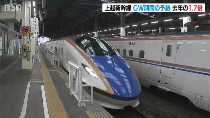 JR東日本がゴールデンウイーク期間中の予約状況を発表し、上越新幹線指定席の予約状況は前の年の1.75倍で、ウイルス禍前の水準に戻ったことが分かりました。JR東日本によりますと、エリア内の新幹線は13日時点で、…