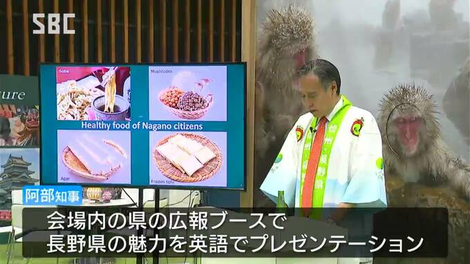 会場内に設けられた県の広報ブースで、食や観光地など長野県の魅力を英語でプレゼンテーションしました。