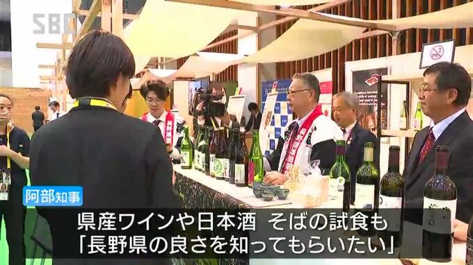 県産のワインや日本酒、そばなどが試食できるブースも設けられ、阿部知事は長野県の良さを知ってもらいたいと話していました。