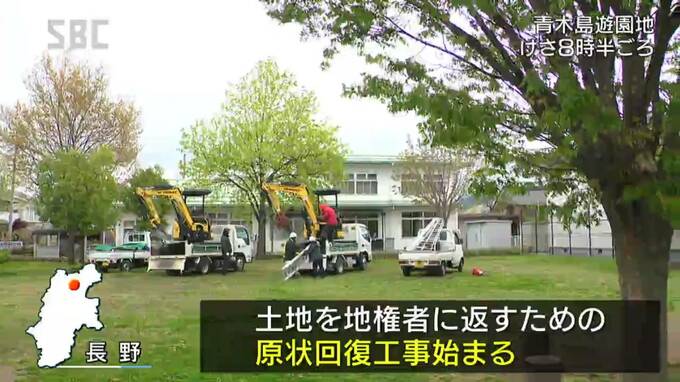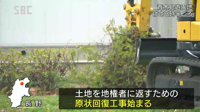 長野市の青木島遊園地ではけさ、土地を地権者に返すため更地に戻す原状回復工事が始まりました。