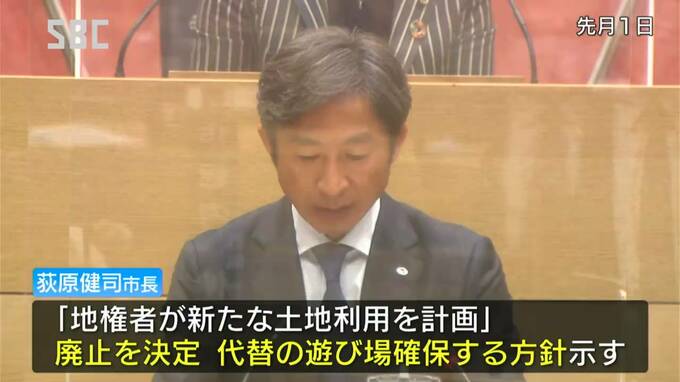 荻原健司(おぎわら・けんじ)市長は3月、地権者が新たな土地利用を計画しているなどとして廃止を最終決定し、代替の遊び場を確保する考えを示しました。
