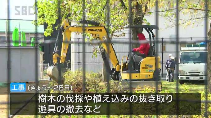 工事はきょうから28日までの日程で、樹木の伐採や植え込みの抜き取り、遊具の撤去などが予定されています。