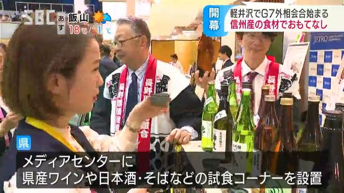 一方、国内外の報道関係者が集うメディアセンターには、県が県産のワインや日本酒、そばなどを試食できるコーナーを設置。