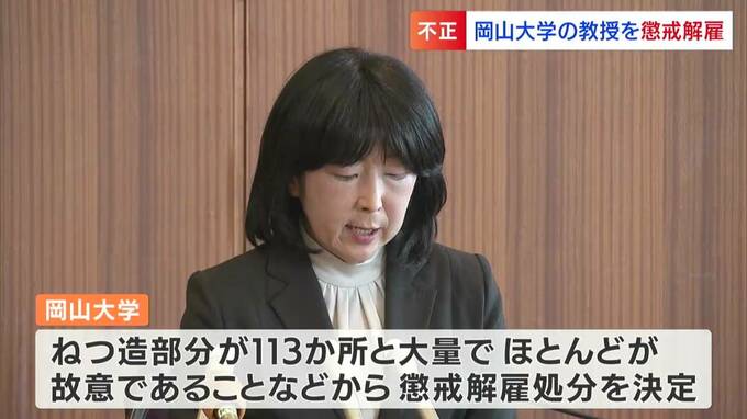 100か所以上にわたり、がんについての論文の内容をねつ造したとして、岡山大学は学術研究院の教授を(4月)14日付けで懲戒解雇処分にしました。