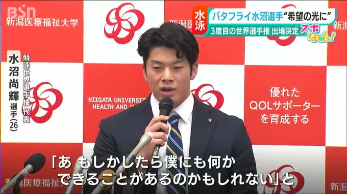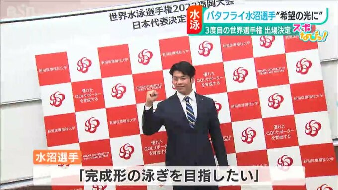7月の世界選手権出場を決めた新潟医療福祉大学職員のバタフライ・水沼尚輝選手が意気込みを語りました。