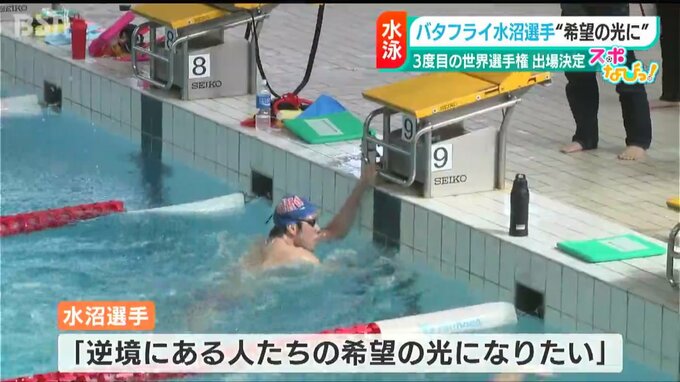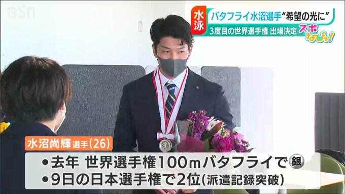 22年の世界選手権100メートルバタフライで自身初の銀メダルを獲得した新潟医療福祉大学職員の水沼尚輝選手(26)。9日の日本選手権で2位になり派遣標準記録を突破。3度目の世界選手権出場を決めました。
