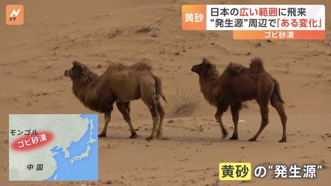 日本の広い範囲で観測された黄砂。その“発生源”ともされる中国とモンゴルにまたがる「ゴビ砂漠」周辺では、「ある変化」が起きていました。私たちが訪れたのは黄砂の発生源の1つ、日本からはるか2000キロ以上離…